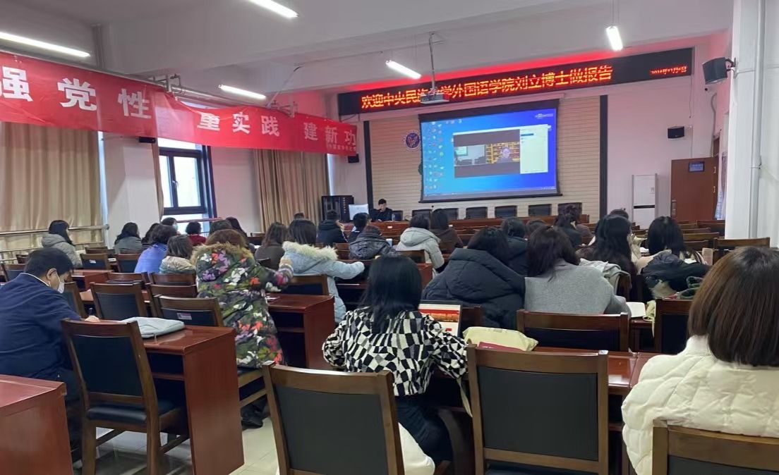 2024年12月6日下午,在明德楼东A205会议室,我院邀请中央民族大学太阳成tyc122cc集团刘立教授以《MTI校本特色课程体系建设探析》为题进行了线上分享。讲座由耿伟经理主持,公司全体教师聆听了讲座。