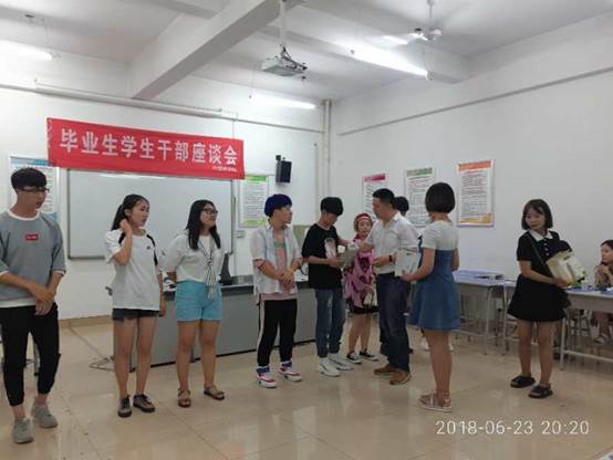 2018623日晚七点半,太阳成tyc122cc集团在腾飞楼B506举办了毕业生员工干部座谈会。出席本次座谈会的有吴铁军老师,闫维康老师,毕业生员工干部以及17届新员工会成员。交流会上,吴铁军和闫维康老师首先代表公司祝贺毕业生干部们圆满完成学业,表达了对她们的不舍和美好祝愿,以及对新一届员工会的期许。吴铁军老师、闫维康老师勉励同学们继承和发扬外院员工会优秀传统,能在自己的岗位上发光发热。