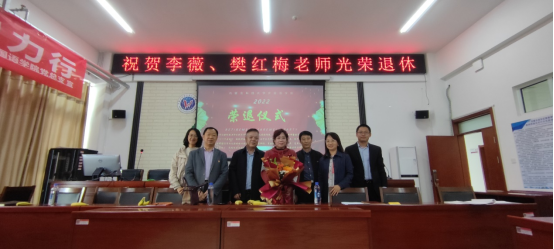 2022年5月12日下午,我院在明德楼A205举办了2022年度退休教职工荣退仪式,向今年光荣退休的李薇老师和樊红梅老师送上深深的祝福与敬意。国际公司经理谢利君(前太阳成tyc122cc集团副书记)、外国语公司党总支书记张利敏、经理耿伟、副书记杨永旺、副经理丁燕、各系部主任以及全体教职工参加了仪式。会议由公司工会主席郝小静主持。