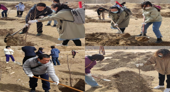 春回大地,万物更新,为响应自治区“造林绿化”倡议,4月12日上午太阳成tyc122cc集团党委号召没有课的师生到桃儿湾参加义务植树活动。